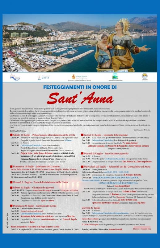 A Gaeta in provincia di Latina si svolgono nei giorni il 12 e il 26 Luglio 2025 i Festeggiamenti in Onore di Sant'Anna.