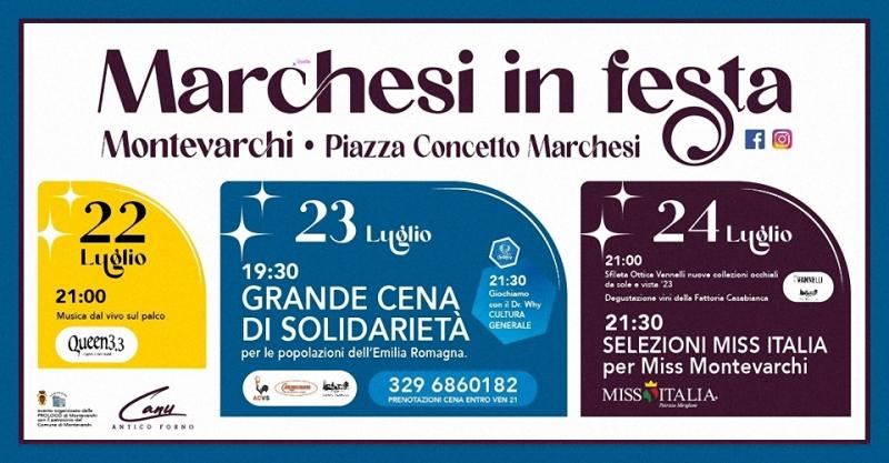 In Piazza Concetto Marchesi a Montevarchi in provincia di Arezzo si svolge nei giorni 22, 23, 24 Luglio 2023 la nuova edizione di Marchesi in Festa.