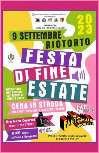 Sabato 09 Settembre - Le associazioni di Riotorto, le attività commerciali vi aspettano per la Festa di Fine Estate.