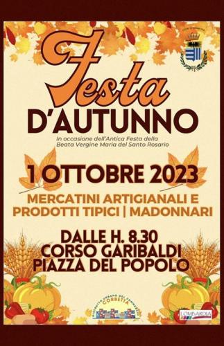 In occasione dell'Antica Festa della Beata Vergine Maria del Santo Rosario, presso Corso Garibaldi e Piazza del Popolo a Corbetta in provincia di Milano si svolge nella giornata di Domenica 01 Ottobre 2023, dalle ore 08.30, la Festa d'Autunno con i mercatini artigianali e prodotti tipici.
