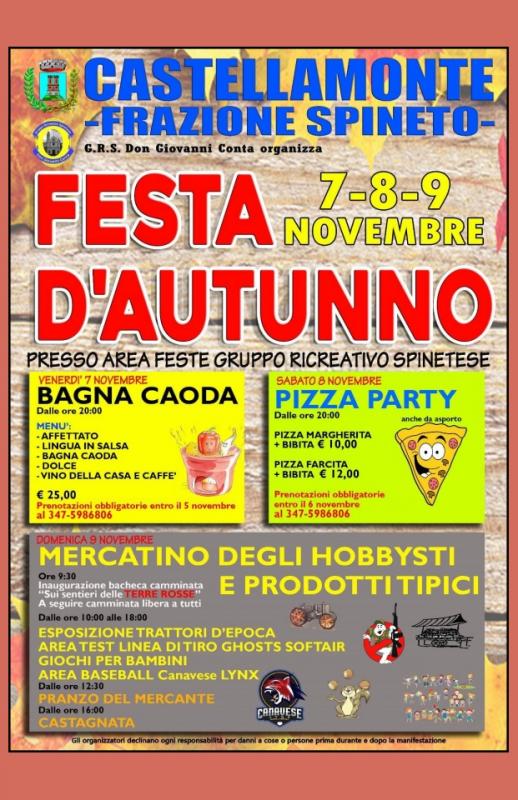 E' arrivato l'autunno e da Venerdì 07 a Domenica 09 Novembre arriverà anche la consueta Festa d'Autunno organizzata con le Banda Musicale di Spineto presso la piazza centrale di Spineto.