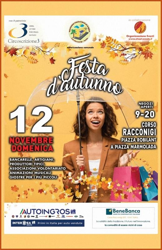 Domenica 12 Novembre vi aspettiamo in Corso Racconigi a Torino. Dalle ore 09.00 alle ore 20.00 nel tratto tra Piazza Robilant e Piazza Marmolada, la Via si riempirà di bancarelle di qualità con una selezione di prodotti tipici e artigianato del territorio Italiano. Espositori e Associazioni coloreranno la via tra Musica, Animazioni e Giostre per bambini.