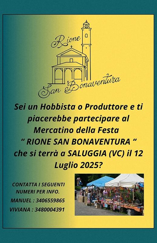 Sei un Hobbista o Produttore e ti piacerebbe partecipare al Mercatino della Festa "RIONE SAN BONAVENTURA" che si terrà a SALUGGIA (VC) il 12 Luglio 2025?