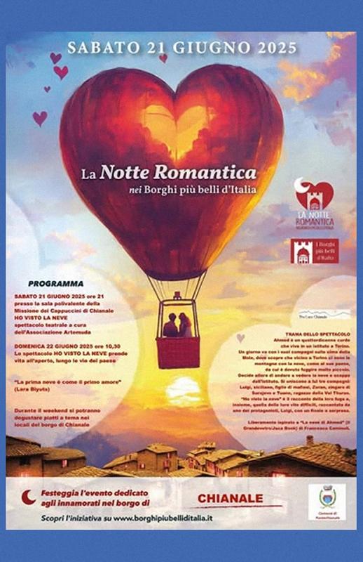 Chianale rinnova la sua adesione all’iniziativa nazionale “La Notte Romantica nei Borghi più belli d'Italia”, accogliendo Sabato 21 Giugno tutti gli innamorati (e non solo) con un’atmosfera suggestiva e ricca di emozioni.