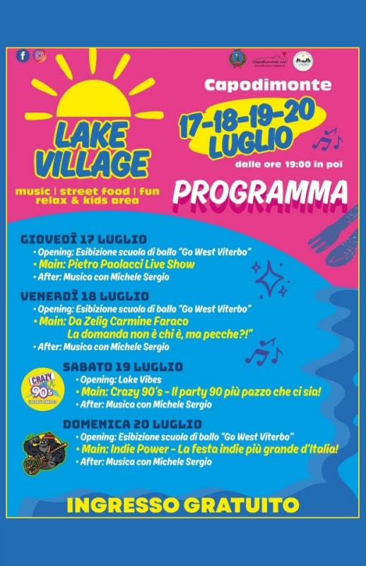 Un grande evento in programma da Giovedi 17 Luglio fino a Domenica 20 Luglio con musica, street food e giochi per bambini....dove? Capodimonte sul lago di Bolsena.
