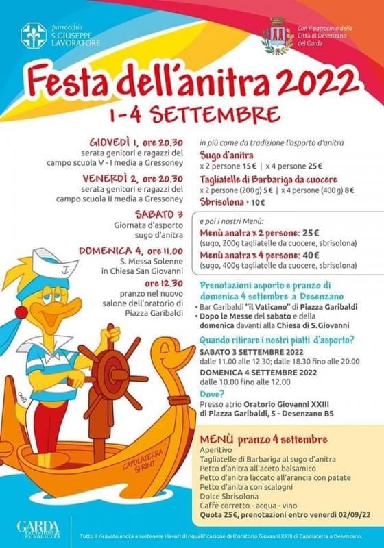 dall'1 al 4 Settembre 2022 si svolge la Festa Patronale di S. Giovanni in Capolaterra con la Festa dell'Anitra a Desenzano.