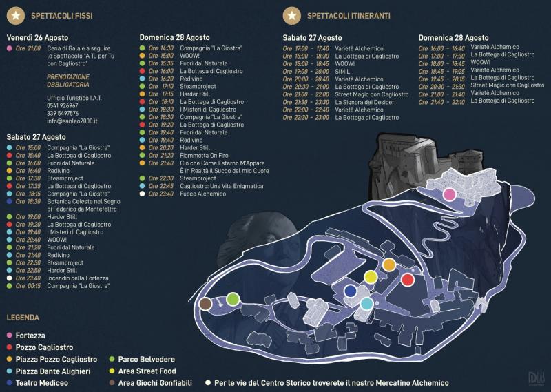 Da non perdere, sempre tra le novità dell'edizione 2022, “Cagliostro: una vita enigmatica”: attraverso la tecnica della Sand Art (l'animazione con la sabbia), Stefania Bruno racconterà la vita del conte nel suo periodo di permanenza a San Leo (domenica 28, piazza Dante Alighieri ore 22.45).