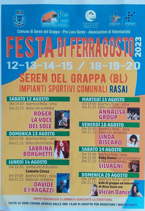 Festa di Ferragosto a Seren Del Grappa dal 12 al 15 e dal 18 al 20 agosto 2023
