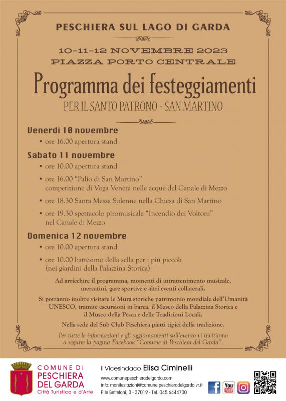 Dal 10 al 12 Novembre 2023 si svolge la Festa di San Martino Vescovo, patrono di Peschiera del Garda.