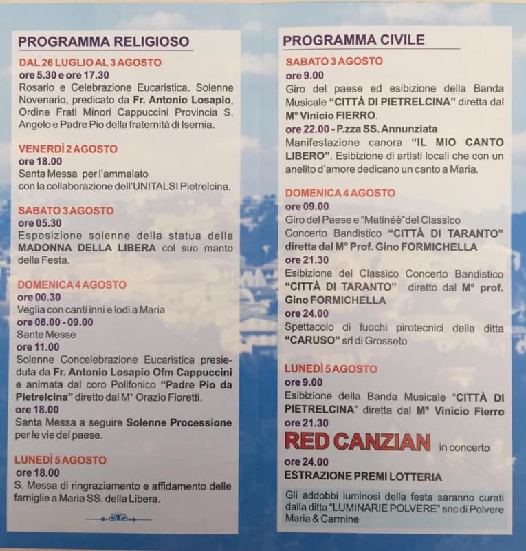 Info: www.facebook.com/Comitato-Festa-Pietrelcina