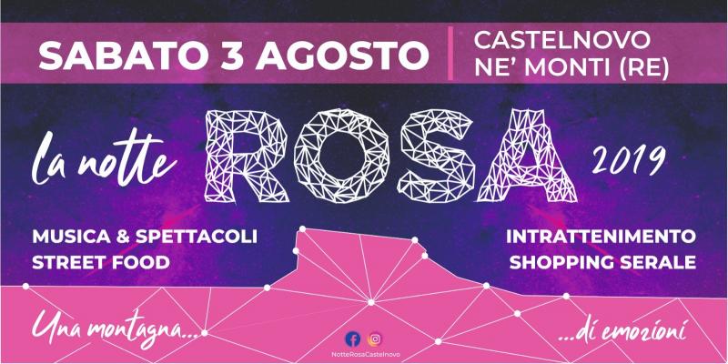 Sabato 3 agosto poi, sarà la volta della grande Notte Rosa di Castelnovo: dalle 19 in avanti una intera nottata all'insegna della musica, spettacoli, shopping e divertimento per tutta la famiglia. Quella del 2019 è la decima edizione di questa manifestazione, organizzata dall'Associazione dei Commercianti Centro Commerciale Naturale, in collaborazione con l'Amministrazione Comunale e diverse associazioni del territorio. Ci saranno in tutte le piazze e le vie del centro musica live, dj set, giochi, divertimento, buon cibo e shopping con l'apertura serale dei negozi.