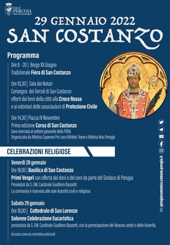 La Festa di San Costanzo, patrono di Perugia, si celebra ogni anno il 29 Gennaio.