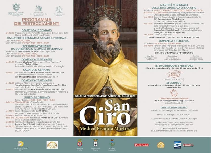 A Grottaglie in provincia di Taranto si svolge nei giorni dal 21 Gennaio al 04 Febbraio 2024 la Festa di San Ciro.