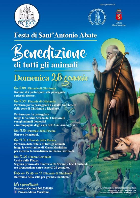 Alle ore 11.30 il corteo, al quale tutta la cittadinanza è invitata a partecipare, partirà dal P.le della Piscina Comunale per arrivare in P.zza Garibaldi dove verrà impartita la tradizionale benedizione degli animali da Sua Eccellenza Monsignor Carlo Ciattini, Vescovo della Diocesi di Massa Marittima e Populonia.