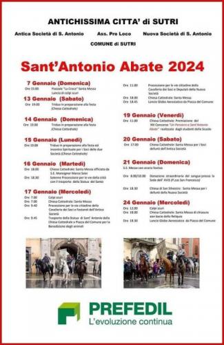 Tra i tanti appuntamenti che celebrano S. Antonio in Provincia di Viterbo quello della Festa di Sant'Antonio Abate a Sutri prevede un lungo calendario di eventi che iniziano già il 07 Gennaio e terminano il 24 Gennaio.