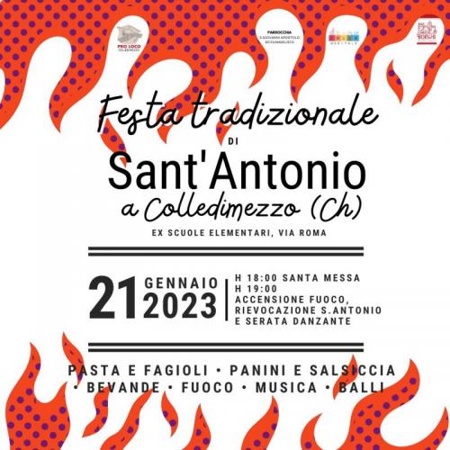Il 21 Gennaio a Colledimezzo accenderemo insieme il tradizionale fuoco di Sant'Antonio alle ore 19:00, a seguito della Santa messa delle ore 18:00 presso le ex scuole elementari in via Roma.