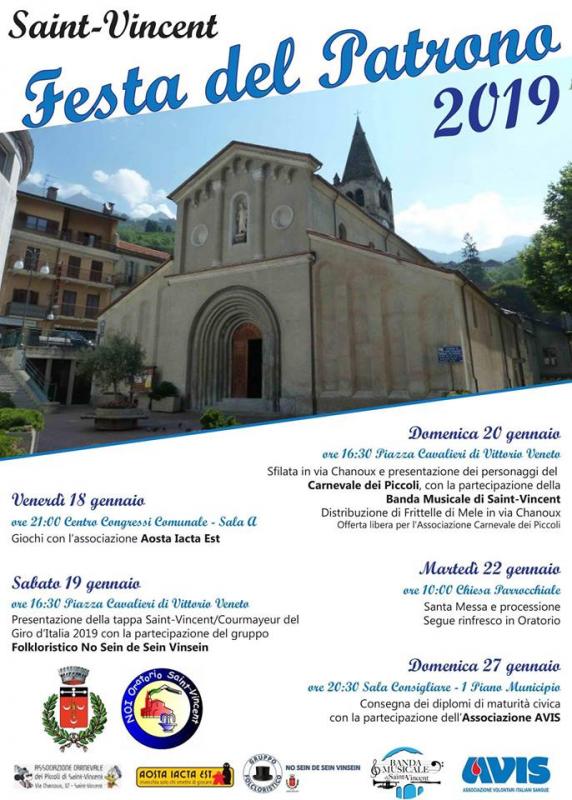Dal 18 al 27 gennaio 2019 si svolgono gli eventi della Festa del Santo Patrono a Saint Vincent (AO).