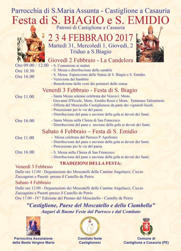 La Festa dei Santi Biagio ed Emidio a Castiglione a Casauria (PE) si svolge il 2, 3, 4 febbraio 2017 con un fitto calendario di eventi religiosi in onore dei patronbi della città.