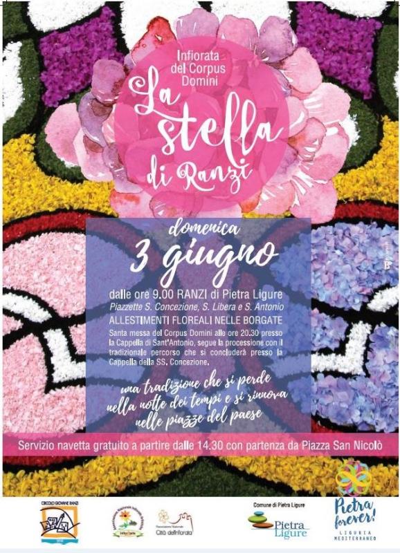 La Stella di Ranzi, la tradizionale Infiorata del Corpus Domini, si svolge quest'anno domenica 3 giugno 2018 a Ranzi di Pietra Ligure (SV).