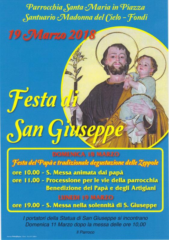 Lunedì 19 marzo 2018 si svolge la Festa di San Giuseppe a Fondi insieme alla Festa del Papà con la tradizionale degustazione delle Zeppole.