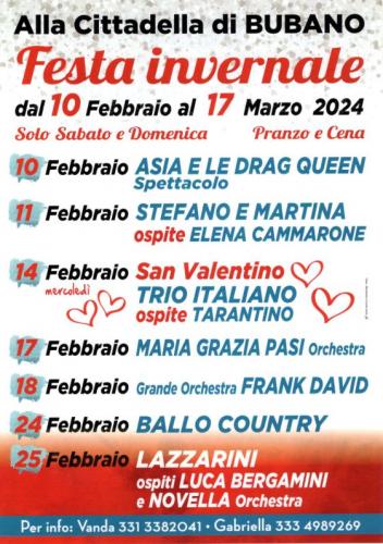 dal 10 Febbraio al 17 Marzo 2024 Solo Sabato e Domenica 'Pranzo e Cena