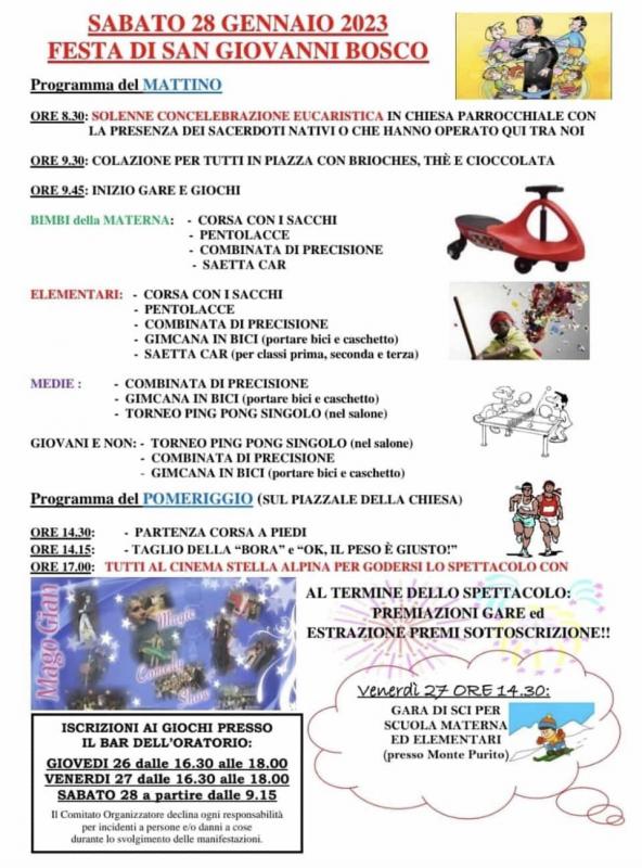 Sabato 28 gennaio, vi aspettiamo tutti per la festa di San Giovanni Bosco presso l'oratorio.