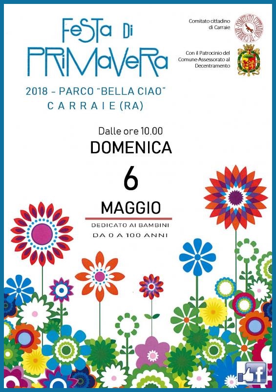 Tradizionale Festa di Primavera a Carraie per bambini dai 0 ai 100 anni:Caccia al Tesoro, Camminata di gruppo, Spettacoli alunni classi primarie Scuola San Pietro in Campiano, Giochi per bambini ed adulti, Truccabimbi, 1° Torneo Tira alla Fune Ville Unite, Mercatino dei bambini, etc etc...