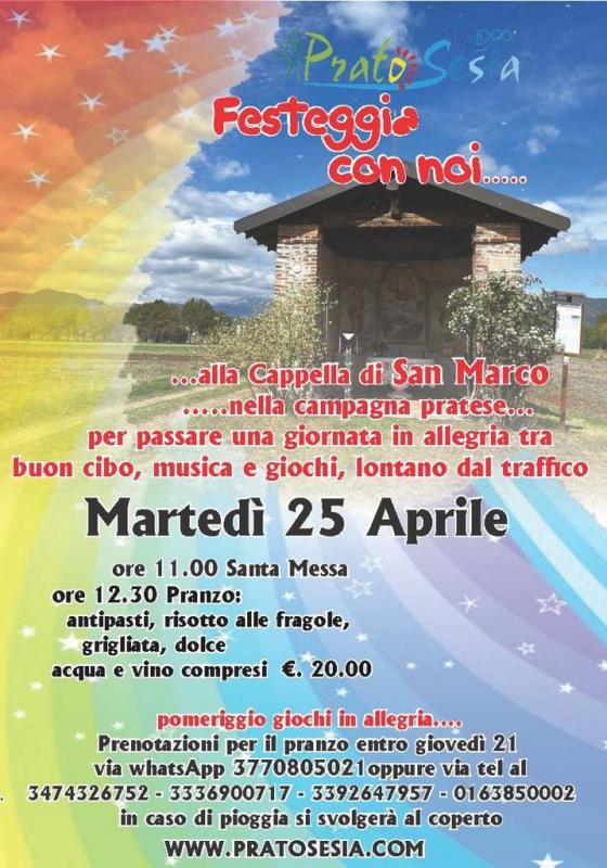 la Pro Loco di Prato Sesia torna ad invitarvi a partecipare alla consueta festa immersa nel verde della campagna pratese, dove è sorta la cappella di San Marco.
