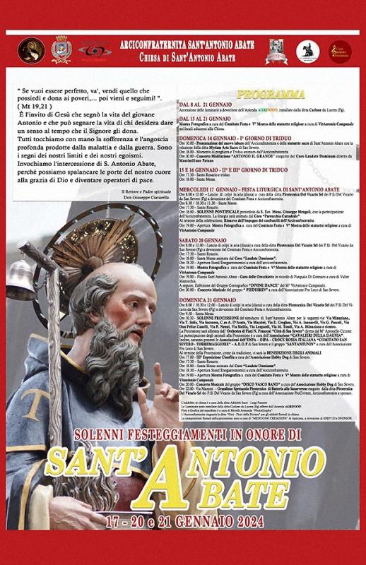 Gli eventi della Festa di Sant'Antonio Abate a San Severo (FG) si svolgono dal 08 al 21 Gennaio 2024.