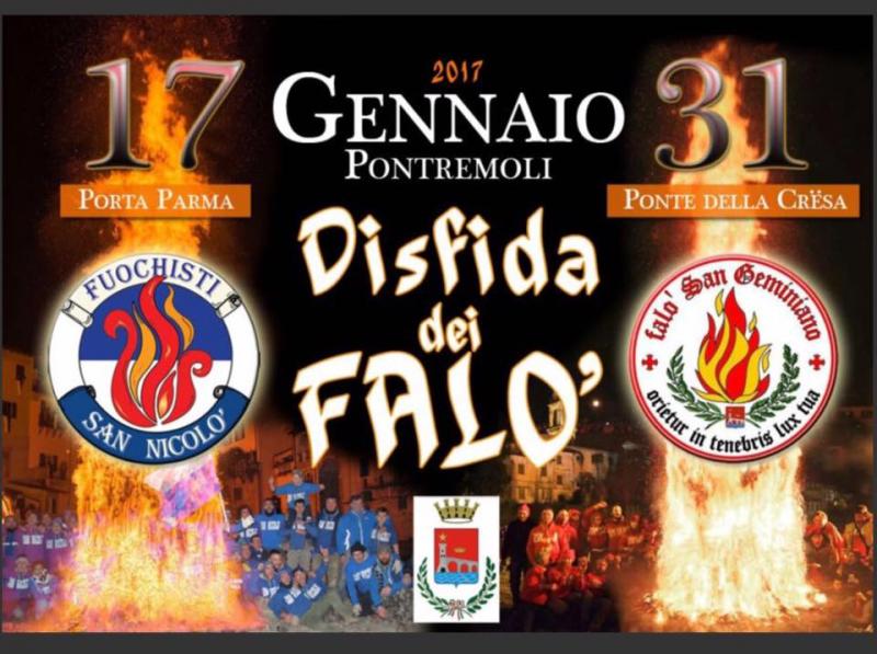 A gennaio Pontremoli è in fermento per la Sfida dei Falò: il 17 gennaio alle ore 19 a Porta Parma il Falò di San Nicolò, mentre il 31 gennaio alle ore 19.30 a Ponte della Cresa il Falò di San Geminiano.