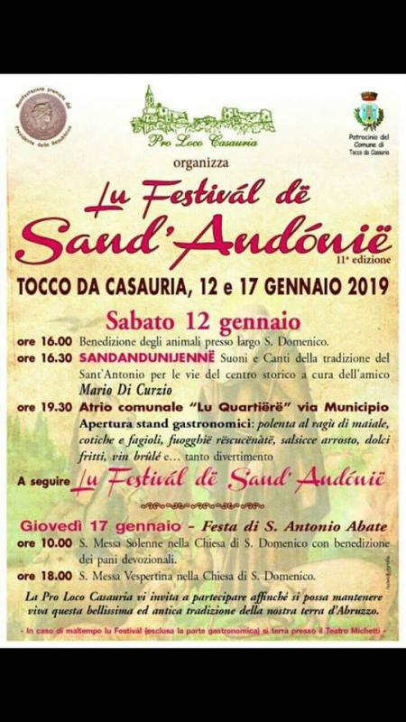 Festa di Sant’Antonio a Tocco da Casauria provincia di Pescara il 12 e 17 gennaio 2019