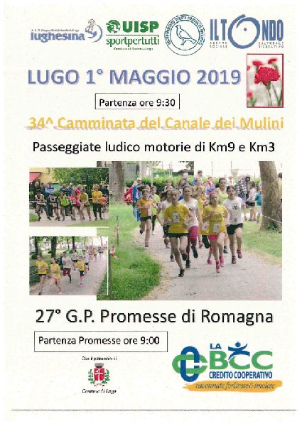 Mercoledì Primo Maggio a Lugo ci sarà la 34esima edizione della Camminata del Canale dei mulini, passeggiate ludico-motorie con percorso a scelta di 8 o 2 km.