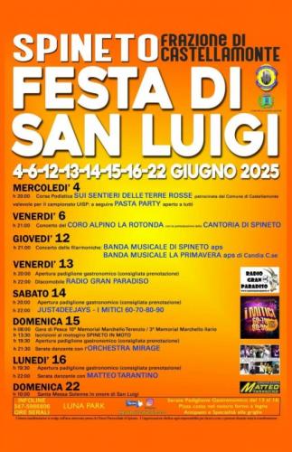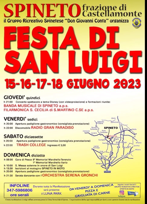 La Festa di San Luigi a Spineto di Castellamonte si svolge nei giorni 04, 06, 12, 13, 14, 15, 16, 22 Giugno 2025.