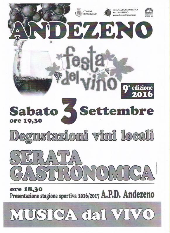 Ad Andezeno (TO) due appuntamenti con musica e Bacco: 24 e 25 giugno 2016 Festa della Birra; 3 settembre 2016 Festa del Vino.