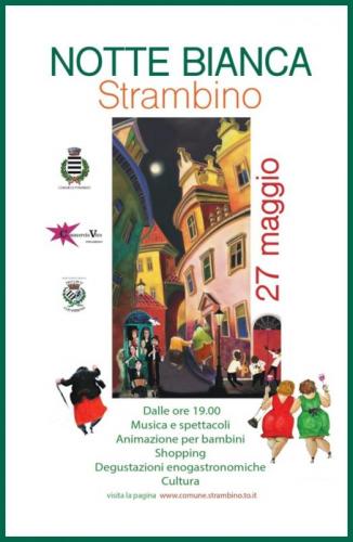 Il comune di Strambino (TO) ti invita Sabato 27 Maggio 2023 dalle ore 19.00 a tirar tardi tra le Vie e Piazze del centro storico del paese.
