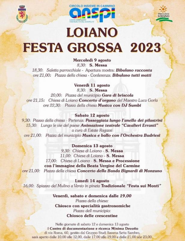 Festa Grossa in onore della Madonna del Carmine a Loiano dal 9 al 13 Agosto 2023