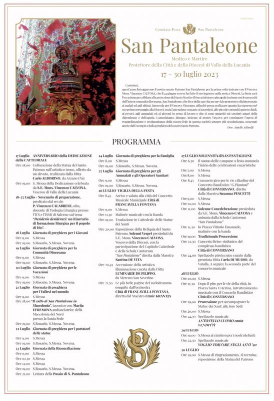 Dal 17 al 30 Luglio 2023 a Vallo della Lucania (SA) si svolgono gli eventi della Festa Patronale di San Pantaleone.