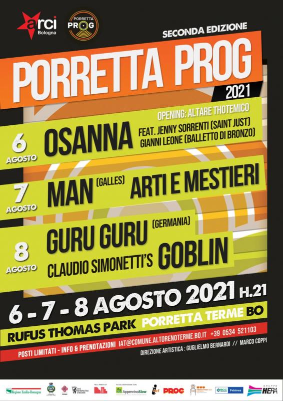 Nei giorni 6 – 7 – 8 Agosto 2021 si terrà la seconda edizione del Porretta Prog Festival, una tre giorni dedicata ad uno dei linguaggi musicali più significativi nato e sviluppato negli anni sessanta e settanta: il Rock Progressive. Il rock, la musica classica, il jazz, il blues, l’elettronica, la forma canzone e la lunga suite confluiscono in questo mondo musicale ricchissimo di genialità artistica e di evoluzioni continue.