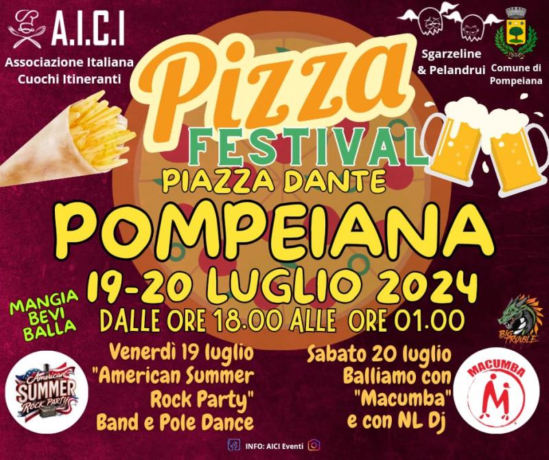 POMPEIANA PIZZA FESTIVAL 19 E 20 LUGLIO 2024 DALLE 18.00 ALLE 24.00 IN PIAZZA DANTE NELLA SPLENDIDA LOCATION DEL BORGO DI POMPEIANA TRA MARE E ALTURA UN' EVENTO IMPERDIBILE, LE MIGLIORI PIZZE DELLA TRADIZIONE ITALIANA E PIZZE SPECIALE A TEMA A BASE DI INGREDIENTI DEL TERRITORIO, BIRRA ALLA SPINA E TANTE SORPRESE CON LIVE MUSIC TUTTE LE SERE SI MANGIA, SI BEVE, SI BALLA