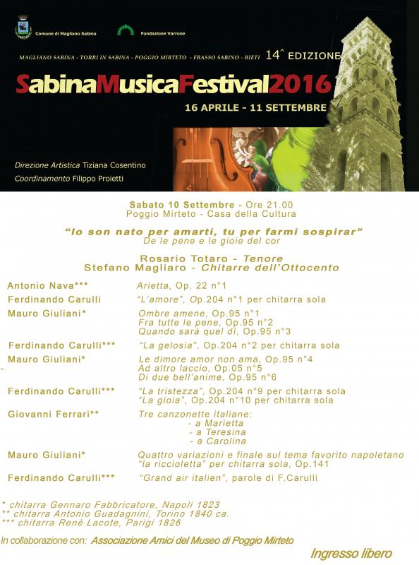Sabato 10 settembre 2016 - SabinaMusicaFestival2016 - concerto Rosario Totaro (tenore) - Stefano Magliaro (chitarre dell'800) - Poggio Mirteto -