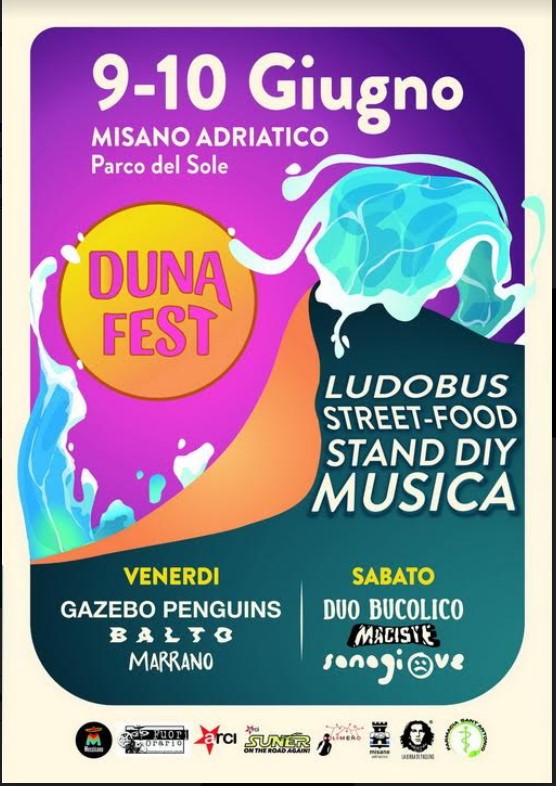 L’evento è stato reso possibile grazie alla collaborazione del Comune di Misano Adriatico, di Arci, Suner, Polimero e con il sostegno di La Birra di Paolino, Farmacia S.Antonio e di tutti gli sponsor. Il Duna Fest è un festival giovane, aperto, inclusivo e accessibile, dove non serve il biglietto: il festival è a ingresso libero, come la musica.