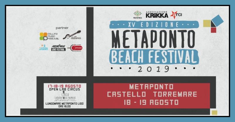 A Metaponto Lido di Bernalda in provincia di Matera si svolge nei giorni 18 e 19 Agosto 2019 la 15a edizione di Metaponto Beach Festival