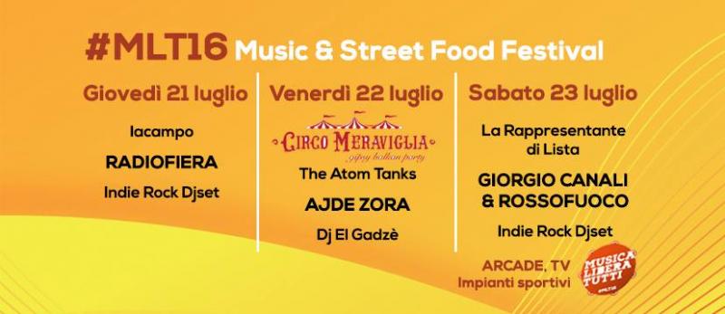 7^ edizione di Musica Libera Tutti Live Festival ad Arcade il 21, 22, 23 luglio 2016.
