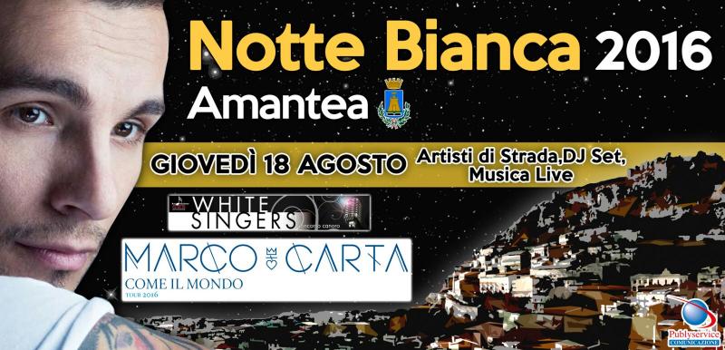 Il 18 agosto torna la Notte Bianca Di Amantea 2016 con MARCO CARTA TOUR 2016 "COME IL MONDO" e: