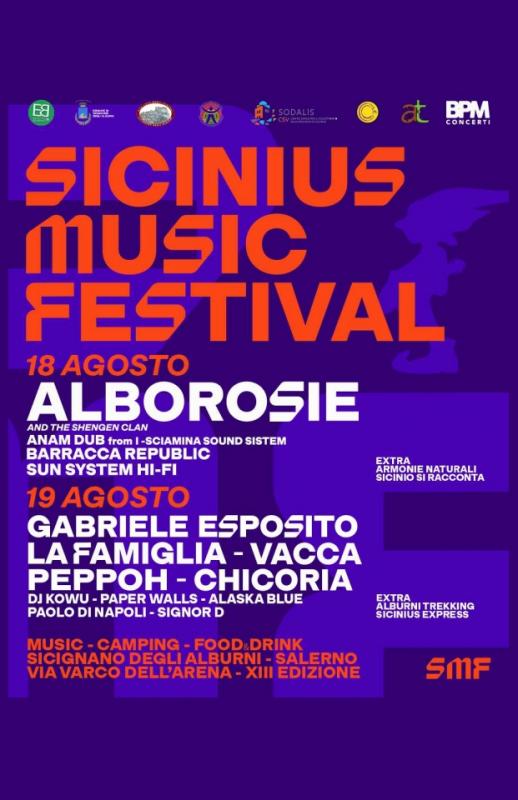A Sicignano degli Alburni in provincia di Salerno si svolge nei giorni 18 e 19 Agosto 2023 la 13a Edizione del Sicinius Music Festival.