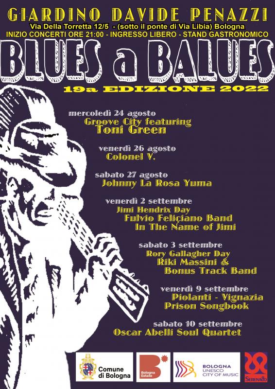 Torna il festival “BLUES A BALUES”, giunto alla 19^ edizione, ormai storico blues festival estivo bolognese, che anche quest’anno porta a Bologna alcuni tra gli artisti più significativi della scena blues nazionale e non solo.