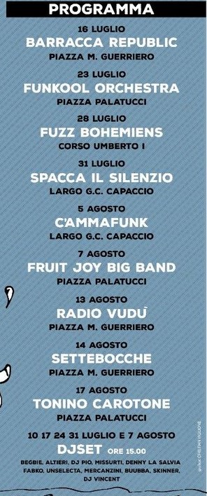 La kermesse nella suggestiva località di Campagna situata in una valle dei Monti Picentini. Tra le tante attrattive proposte dalla cittadina ricordiamo la famosa chiena e i rinomati portoni ghiottoni dove cucina tradizionale e storia confluiscono in un unico piatto sullo sfondo dei bellissimi portoni del centro storico. A partire dal 10 luglio fino al 7 agosto, undici giorni di eventi vi inonderanno di gioia offrendovi una vasta gamma di scelta musicale, ce n’è per tutti i gusti!