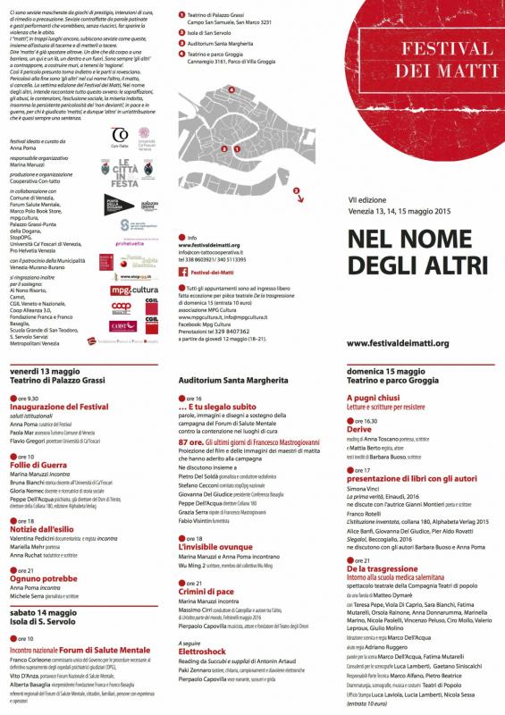 Comune di Venezia, Forum Salute Mentale, Marco Polo Book Store, mpg.cultura, Palazzo Grassi-Punta della Dogana, StopOPG, Università Ca’ Foscari di Venezia Pro Helvetia Venezia