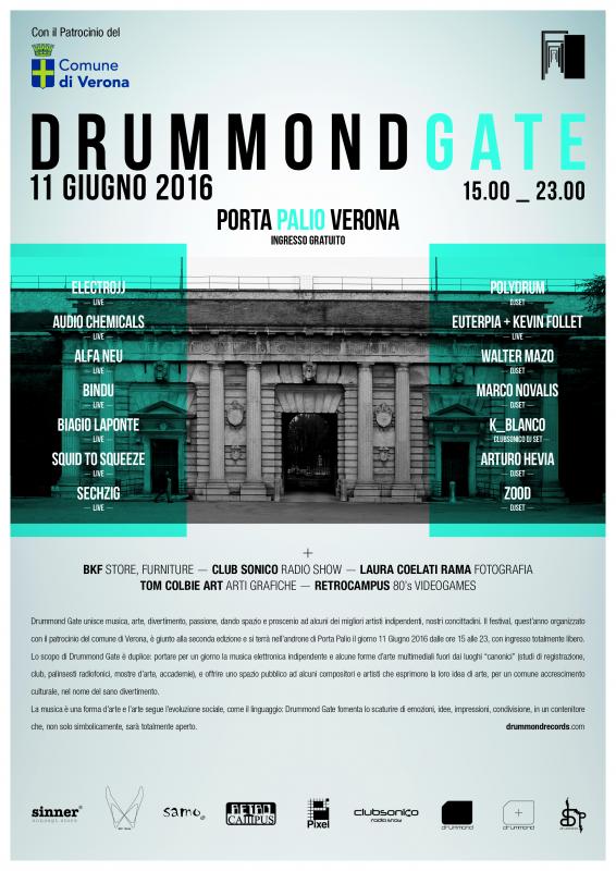 La musica è una forma d'arte e l'arte segue l'evoluzione sociale, come il linguaggio: Drummond Gate fomenta lo scaturire di emozioni, idee, impressioni, condivisione, in un contenitore che, non solo simbolicamente, sarà totalmente aperto.