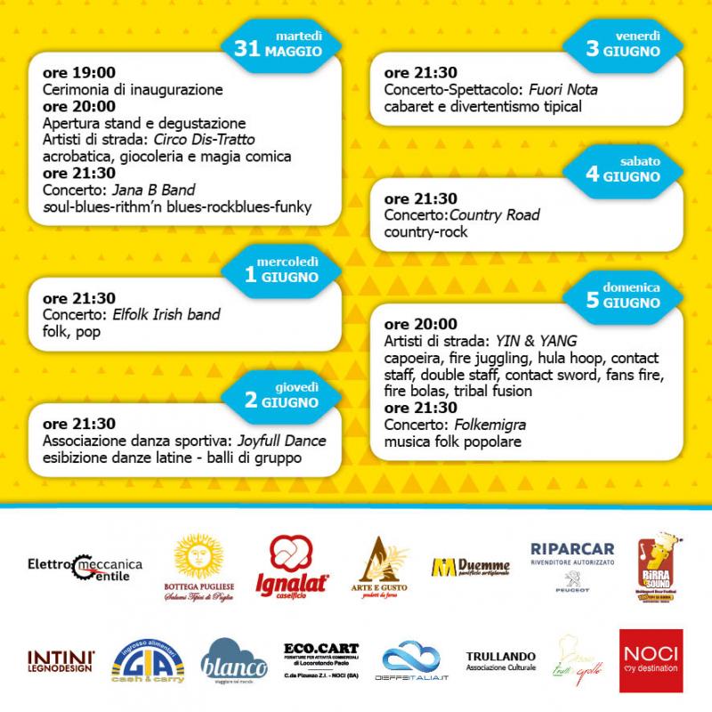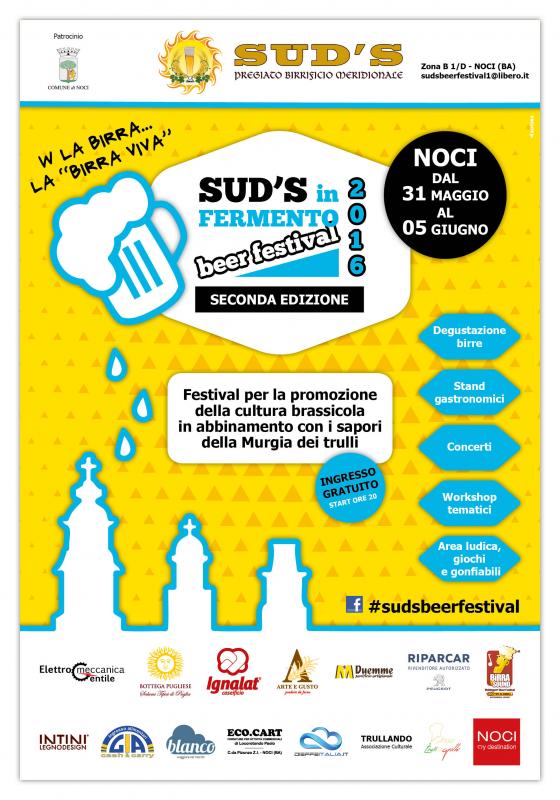 Dopo lo straordinario successo dello scorso anno, si replica il “SUD’S in fermento - Beer Festival” a Noci, in provincia di Bari, cittadina dell’enogastronomia tra le più note in Italia, nei giorni compresi tra il 31 maggio e il 05 Giugno 2016.
